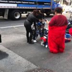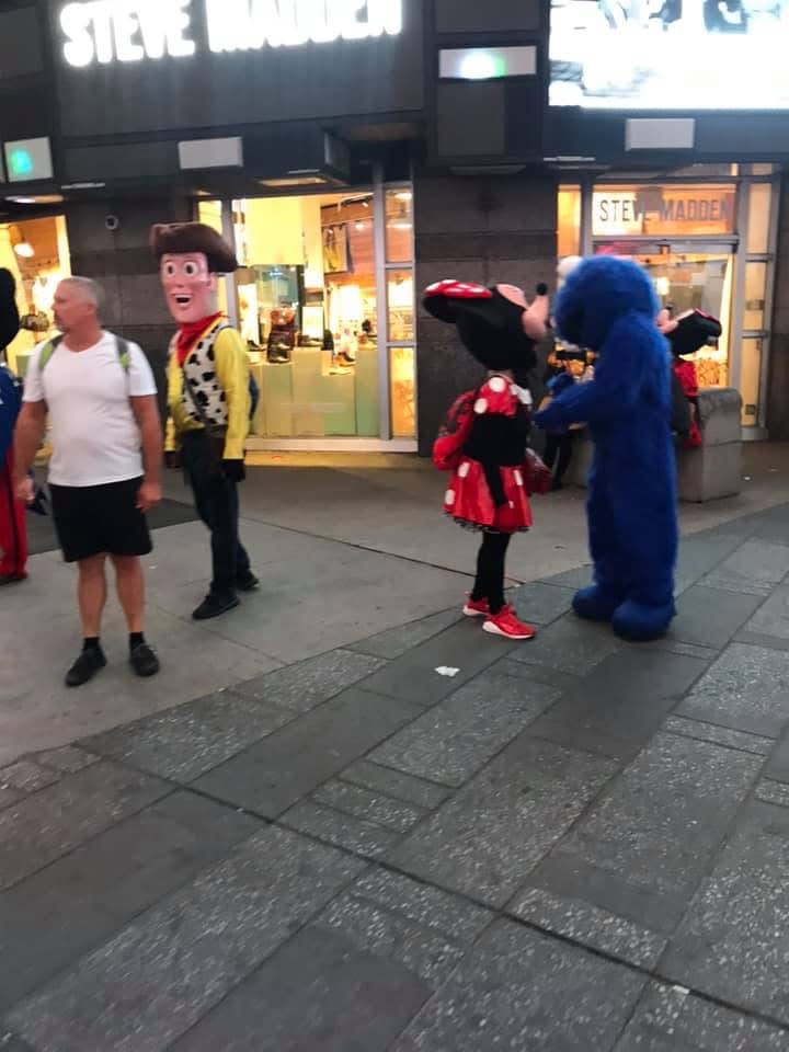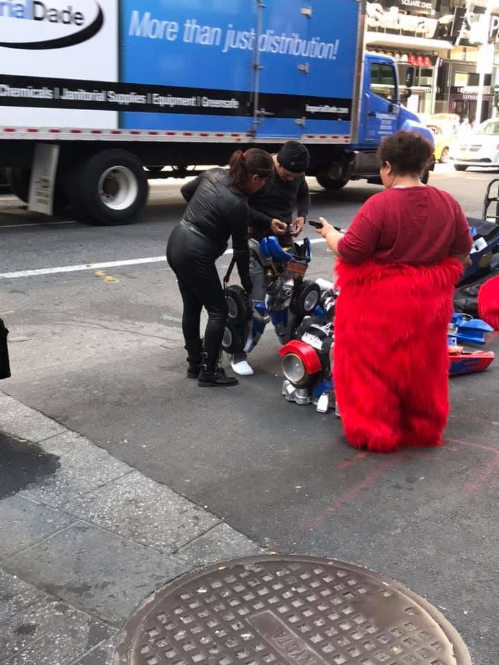 Ráno dělám fotku před vchodem, hlavně proto, aby bylo vidět, že tu mám i jiné oblečení než Vans šaty😀. Vyrážím do EXPG na registraci na taneční workshop week 36chambaz of stylez. Beru to přes Time Square, kde pořizuji Radušce objednané věci, potkávám maskoty, kteří se právě připravují do práce a už hurá na 2 Avenue.