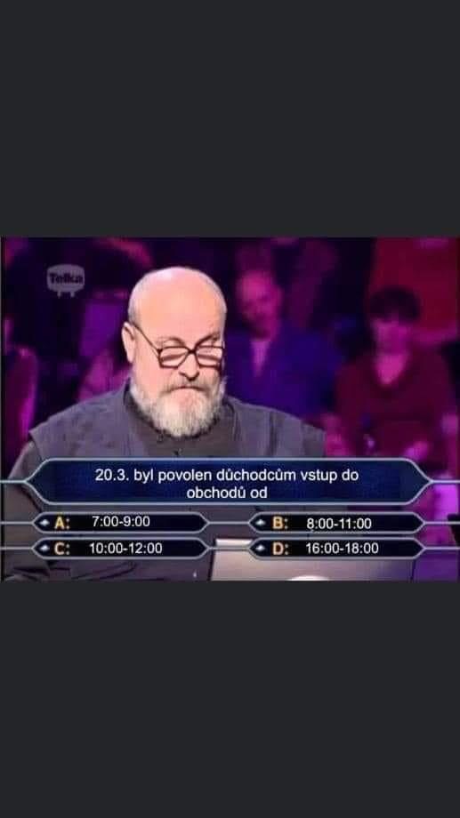 Tréninky nahrazuji videi, co se dá dělat, školka zatím jede, bohužel dětí je málo, ale snad se to zvedne. Tento týden je na programu hra – “Kdy můžou nakupovat důchodci?” Myslím, že to je skvělý kvíz, jelikož odpověď se mění každým dnem. Je zábavné pozorovat, jak se lidi hádají a chtějí vstoupit, jelikož co platilo včera, neplatí dnes, ale všichni jsou tak zmatení, že ani sami neví, kdo tam? Vlastně kdy může. Musíme chránit seniory. Zavřeme tedy školy, ale ekonomika musí fungovat, choďme tedy do práce a své bezpříznakové ratolesti dejme hlídat babičkám a dědečkům, těm nejohroženějším.